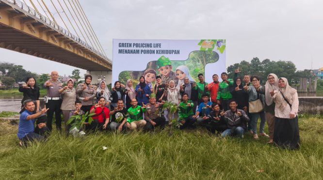 Ditlantas Polda Riau Bersama Gerkatin Lakukan Penghijauan di Tepian Sungai Siak