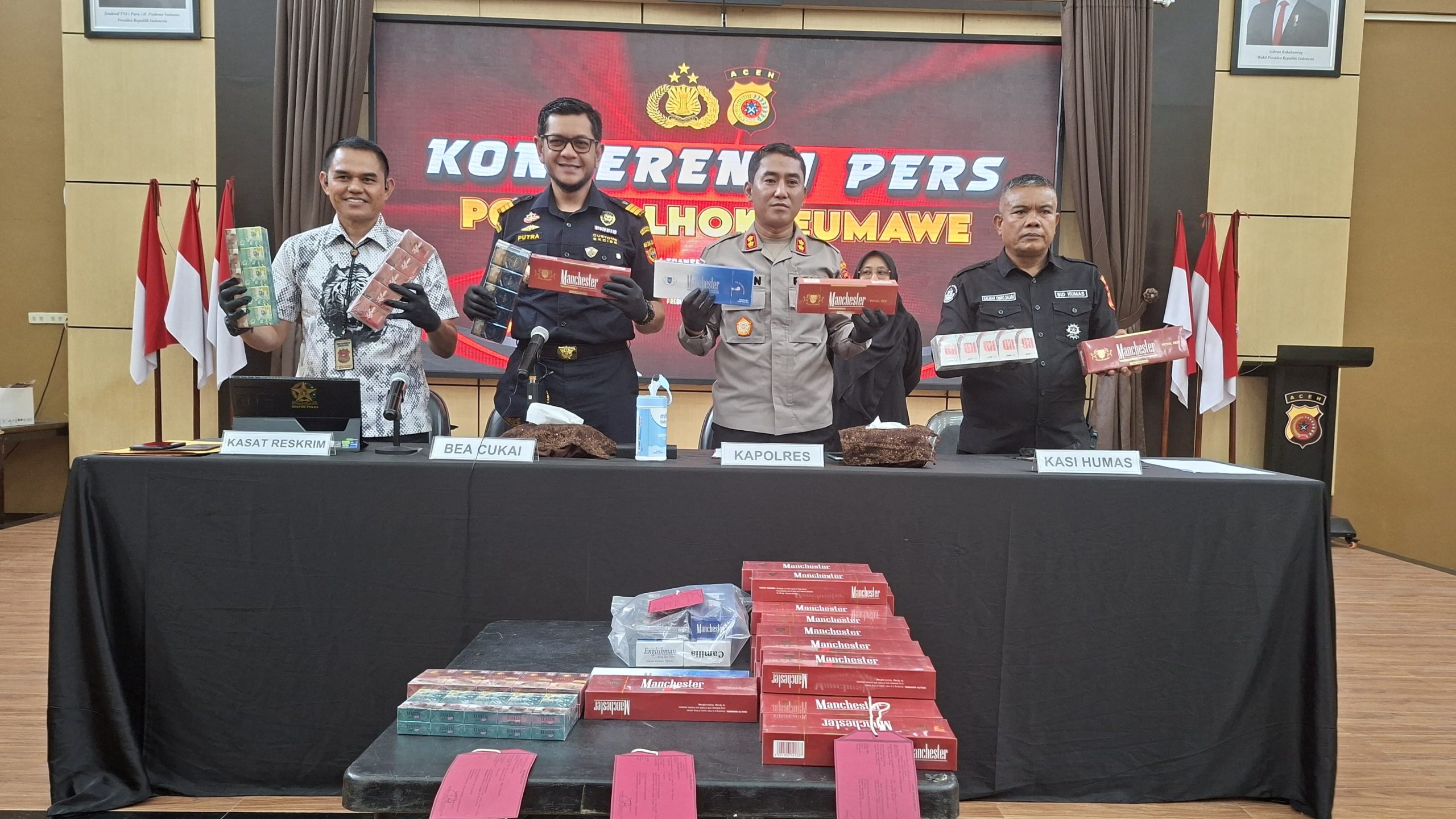 Pengungkapan kasus ini disampaikan kepada awak media dalam konferensi pers yang dipimpin Kapolres Lhokseumawe AKBP Dr. Ahzan, S.H., S.I.K., M.S.M., M.H., didampingi Kasat Reskrim AKP Dr. Bustani, S.H., M.H., M.S.M., M.Si., M.Kn, Kasi Humas Salman Alfarasi, S.H., M.M., serta perwakilan Bea Cukai Muhammad Syahputra, di Gedung Serbaguna Polres Lhokseumawe, Rabu (8/4/2026) pagi.